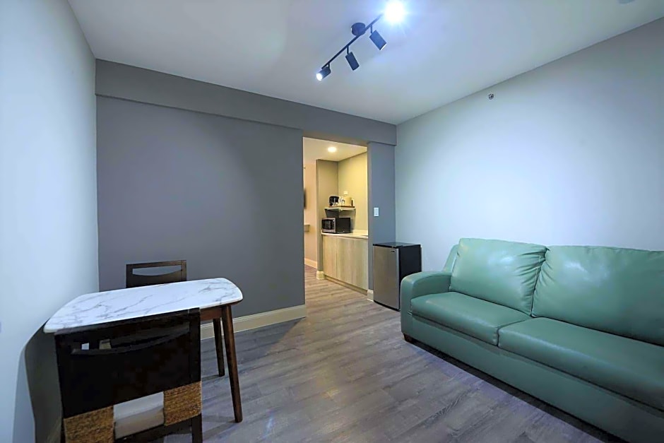 Providing free toiletries, this quadruple room includes a private bathroom with a walk-in shower, a bath or a shower and a hairdryer. The quadruple room's kitchenette, which features a refrigerator and a microwave, is available for cooking and storing food. The air-conditioned quadruple room provides a flat-screen TV with cable channels, a seating area, a safe deposit box, an electric kettle as well as city views. The unit offers 3 beds.